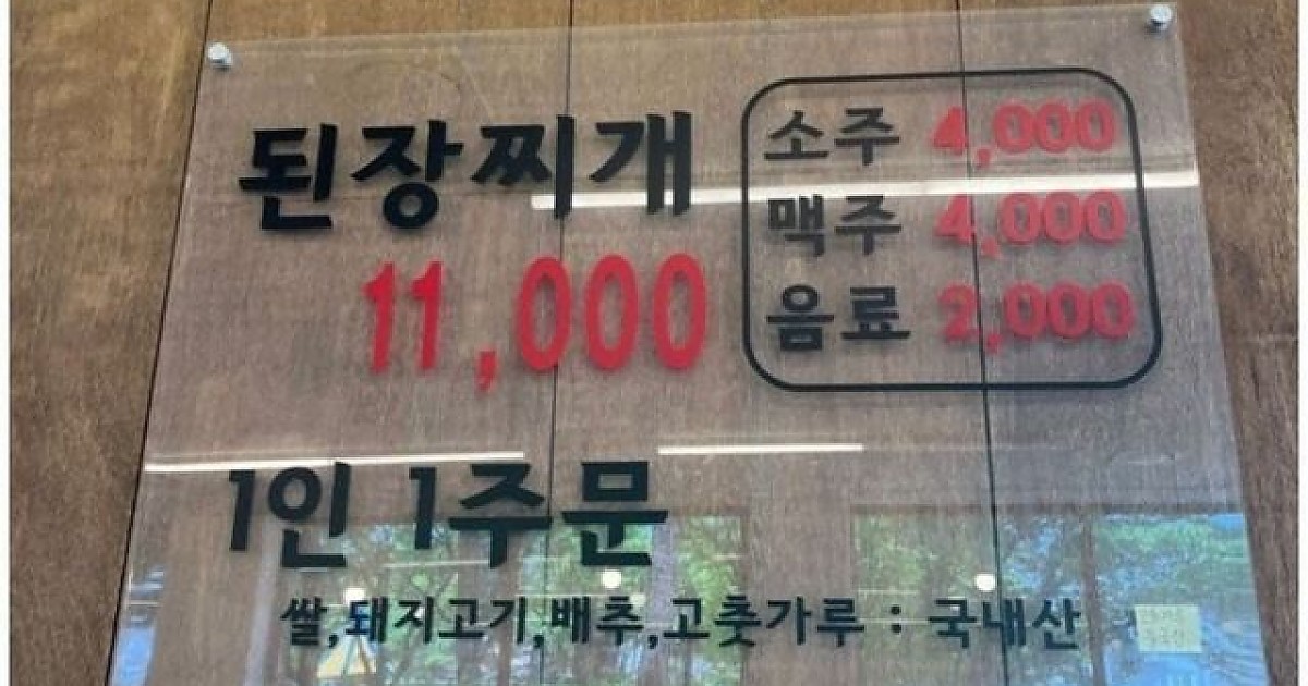 된장찌개만 11,000원에 파는 식당 수준