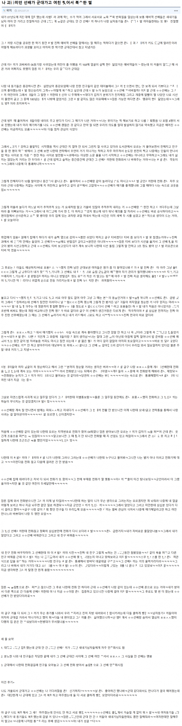 후배 괴ㄹ히던 선배 군대 가고나서 그 선배의 여ㅊ 뺏어 ㄸㅁ어서 복ㅅ한 썰