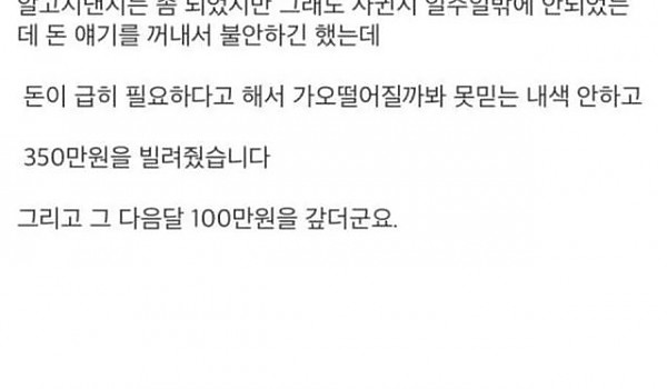 전여친에게 350만원 빌려줬는데 안갚네요