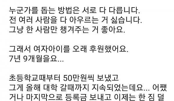 7년 9개월동안 여자아이를 후원한 사람의 글 ㄷㄷ.jpg
