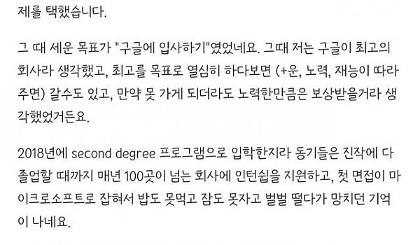 나이 40살에 구글 인턴으로 취업했던 한국 사람