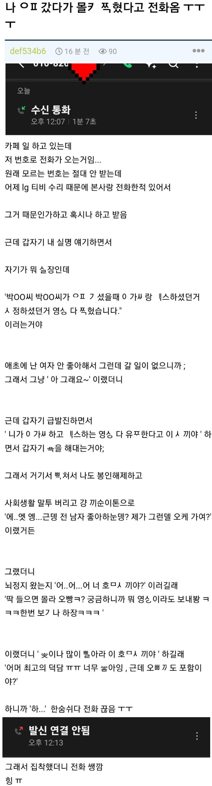 오ㅍ 갔다가 ㅅㅅ몰ㅋ 찍혔다고 연락 받았는데..
