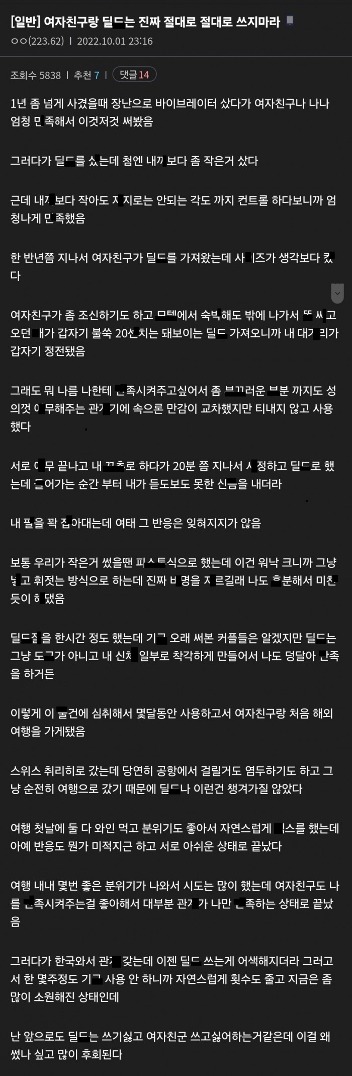 여친이랑 ㅅㅅ할때 딜ㄷ는 쓰지말라는 남ㅈ..r