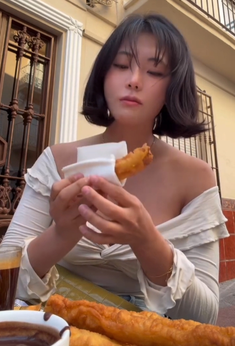 츄러스 먹는데 너무 보이는 누나