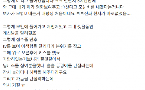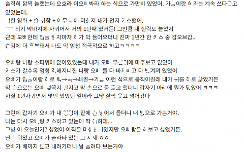 어ㅍ로 만난 ㅈ소 대리녀와 ㅁㅌ 가서 속도위반한 이야기