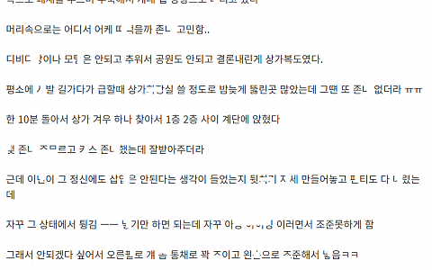 동네 ㄷ.r 방 레ㅈ 하소연 들어주다가 ㅂㅈ 벌ㄹ줘서 ㄲ아버린 이야기