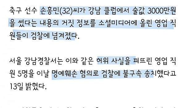 "술값 3000만원 쓴 손흥민" 헛소문 낸 강남 클럽MD들 檢 송치
