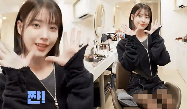 [아이유] '구멍난 검정 스타킹' 의상으로 대기실에서 브이로그 찍고있는 아이유 (영상)