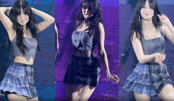 [프로미스나인] 크롭 탱크탑과 짧은 '체크 치마' 의상으로 드러내는 '백옥같은 피부'의 백…