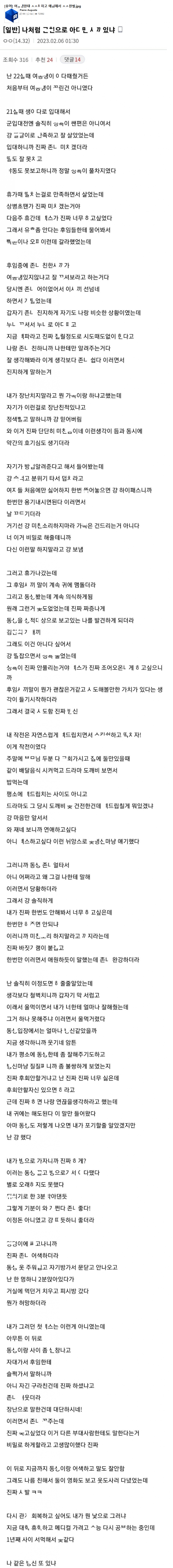 애ㅇ해서 근ㅊ으로 ㅇ다뗀 남ㅈ..r 이야기