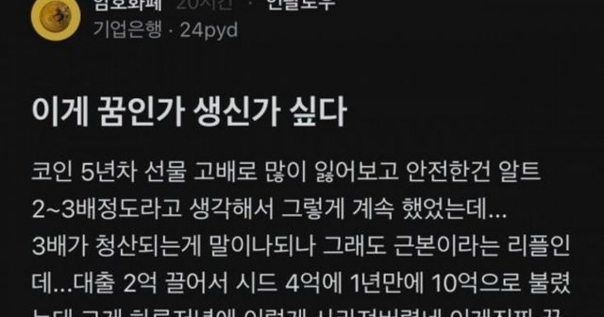 비트코인 10억 청산당한 사람이 올린 글