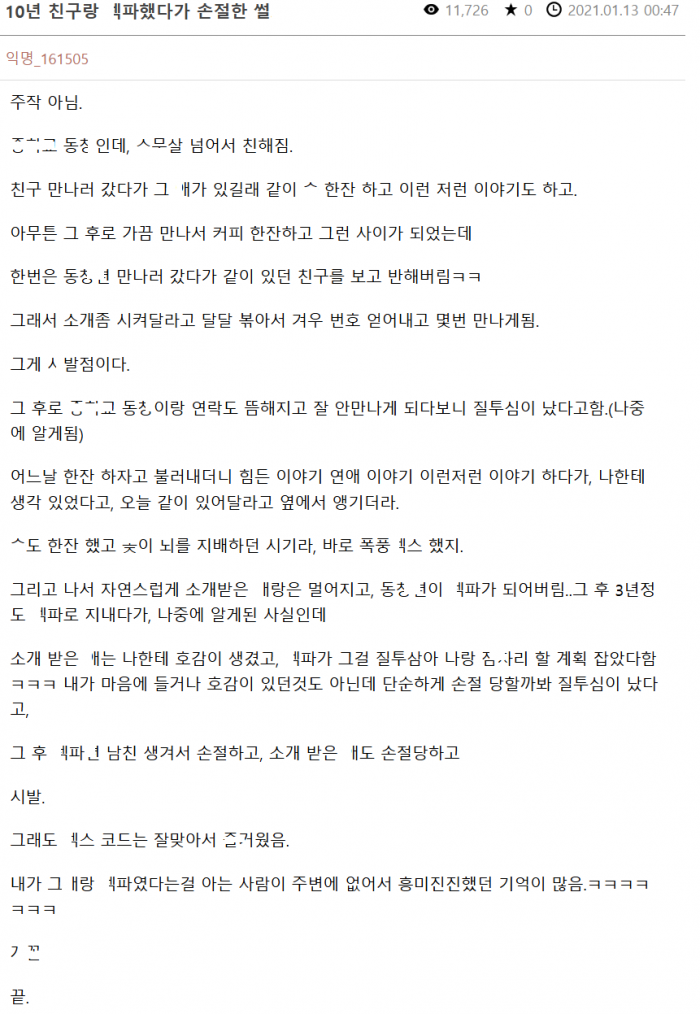 10년 친구랑 ㅅㅅ파ㅌ너로 지냈다가 손절한 썰