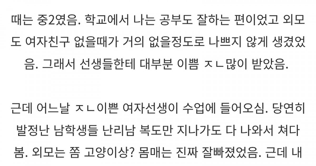 중딩때 미인 선생님이랑 차 안에서 관계한 썰ㄷㄷ.jpg