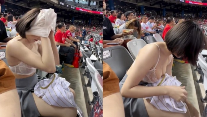 야구장에서 상의 갈아입는 누나