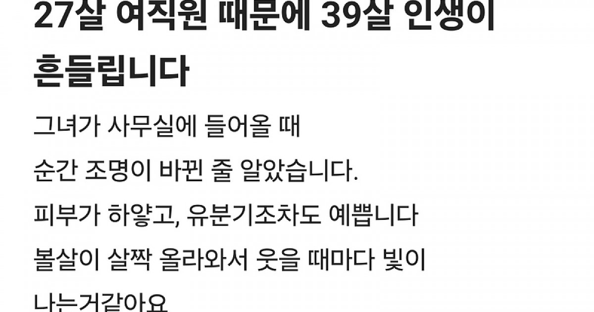 27살 여직원때문에 39살 인생이 흔들립니다