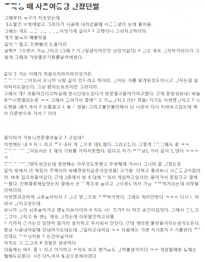 어느 패ㄹ아의 사ㅊ동ㅅ ㅌ하고 능ㅇ한 이야기