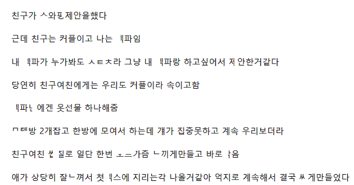 친구커플과 스ㅇㅍ 하고 뒤로 몰래 만나서도 ㄸㅁ은 썰
