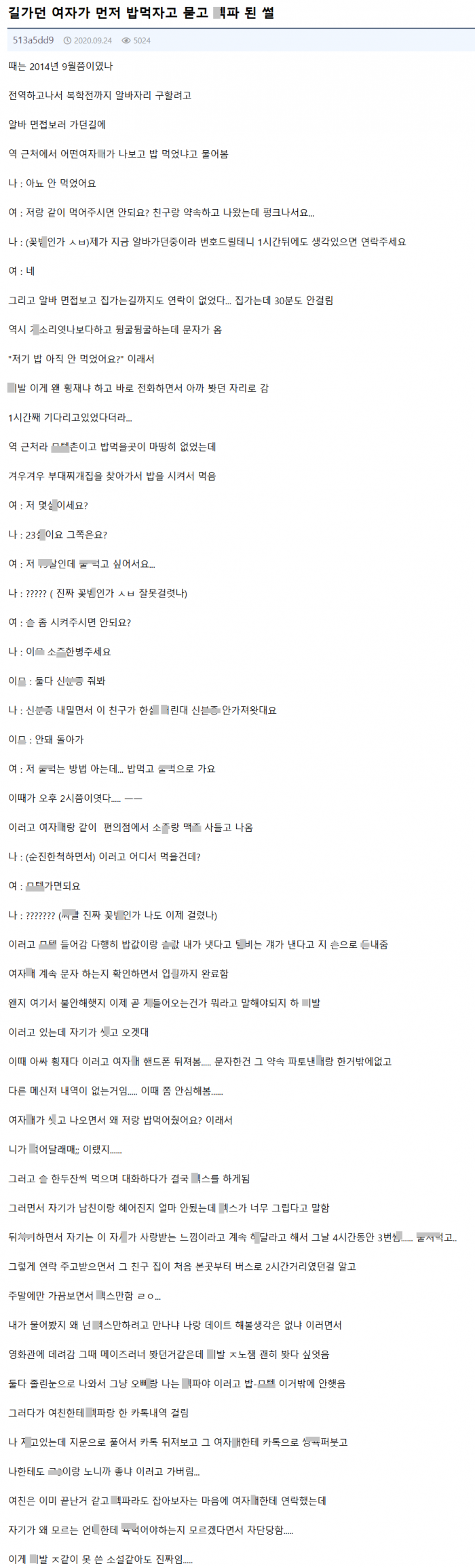 길 가던 여자가 먼저 밥 먹자고 해서 갔더니 생긴 일