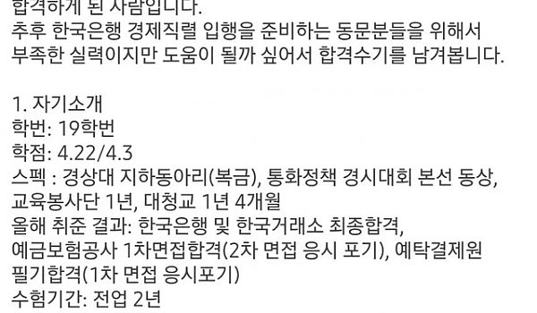 지방대생이 한국은행 경제직렬로 들어가는 법