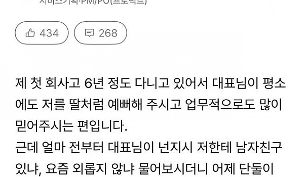 사장님 아들이 제 이상형이라 고민이라는 직장인