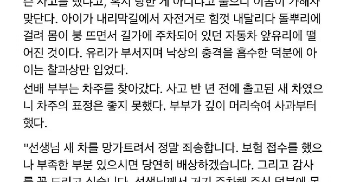 중학생 아들이 남의 차 박살내서 100:0 나옴