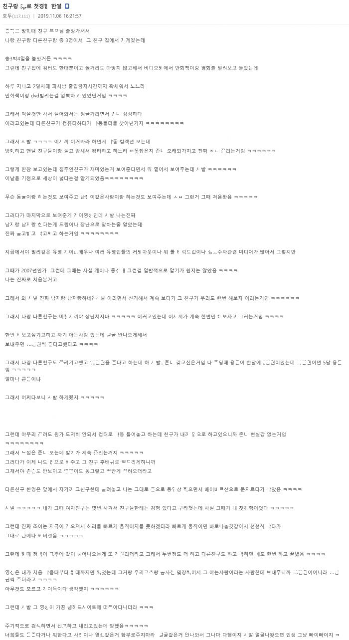 ㅅㅅ 첫경ㅎ을 친구랑 쓰ㄹㅆ으로 한 썰