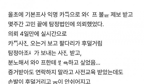 다른 남ㅈ랑 바ㄹ난 와잎과 ㅅㅅ했다는 현차남