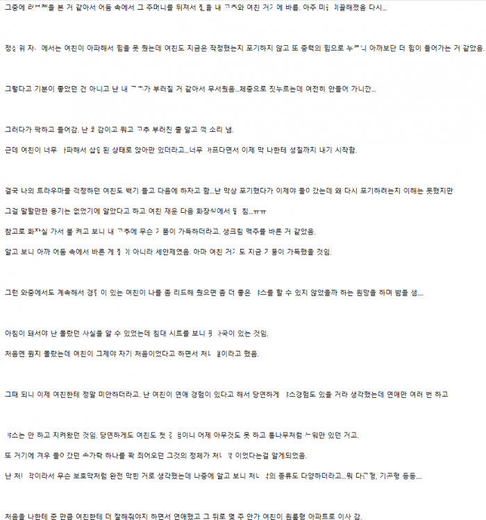첫경ㅎ이었던 여친 처ㄴ막 뚫ㅇ준 모ㅆ남