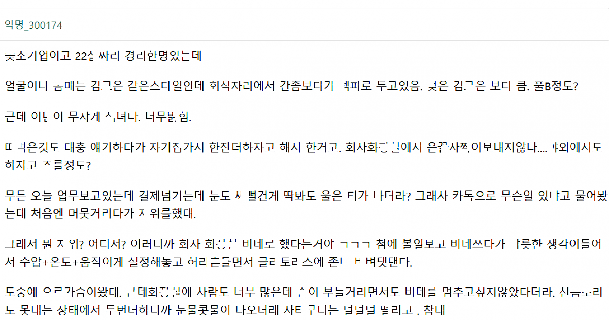 회사에서 ㅈㅇ 하다가 운 회사 ㅅㅅ파ㅌ너 경리 썰