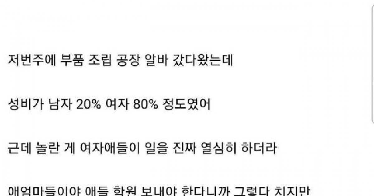 공장알바 갔다가 20대 여자들 보고 감탄한 썰