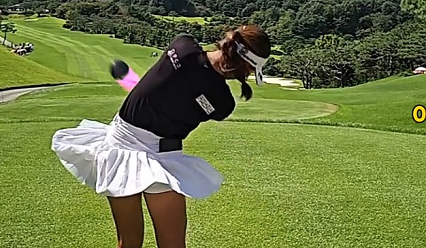 치마가 다 흩날리도록 완벽한 티샷을 보여준 배소현프로(+영상)