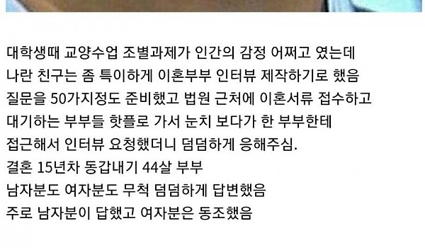 과제로 이혼부부 실제로 인터뷰한 썰