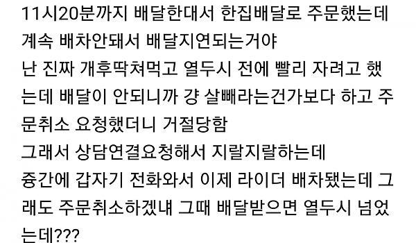 실시간 여시 몇백플찍은 배민 레전드 개진상