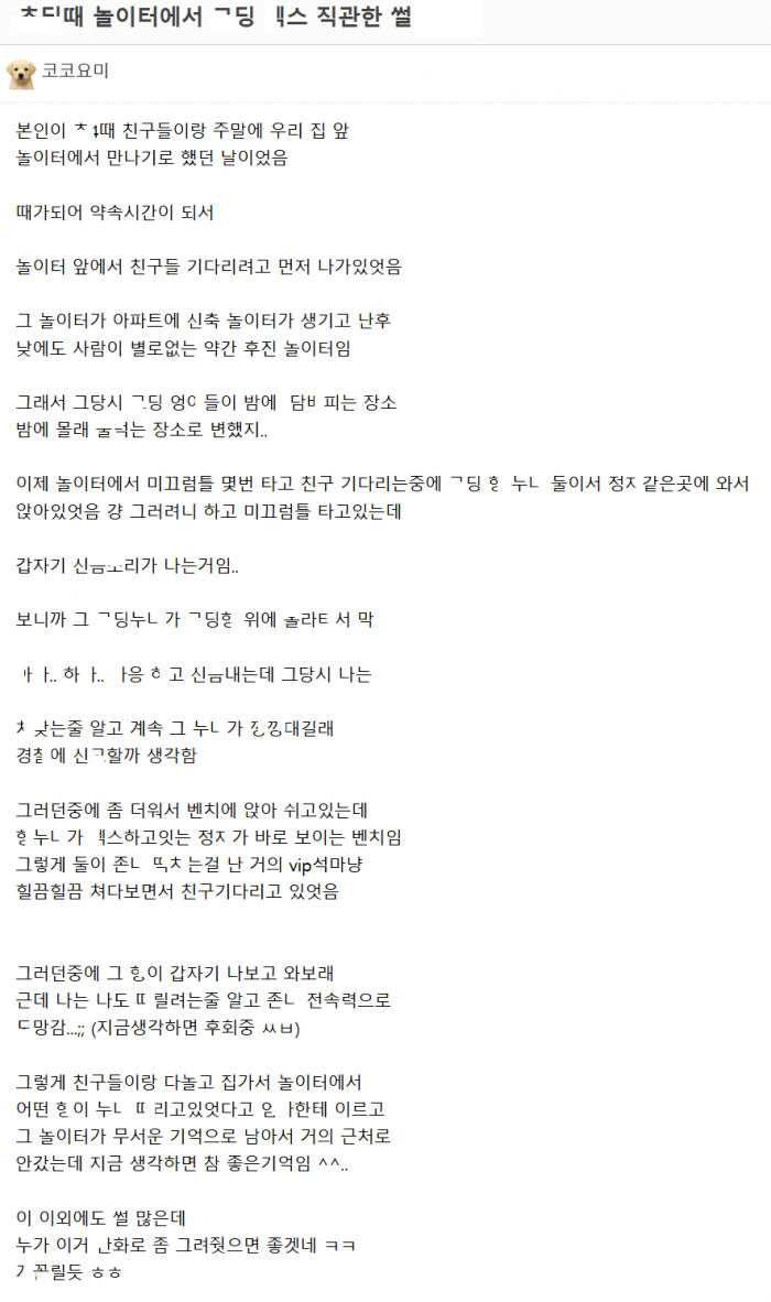 놀이터에서 고ㄷ ㅅㅅ 직관한 썰