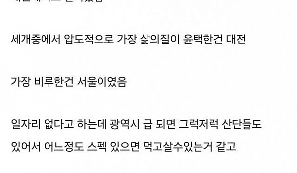 20대들이 서울에 환장하는걸 이해못하겠음 지방이 최고임