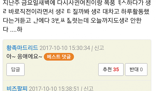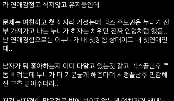 ㅁ많고 ㅂㅈ가 항상 ㅈ어있었던 여친이 안 ㄷ줘서 고민인 남자