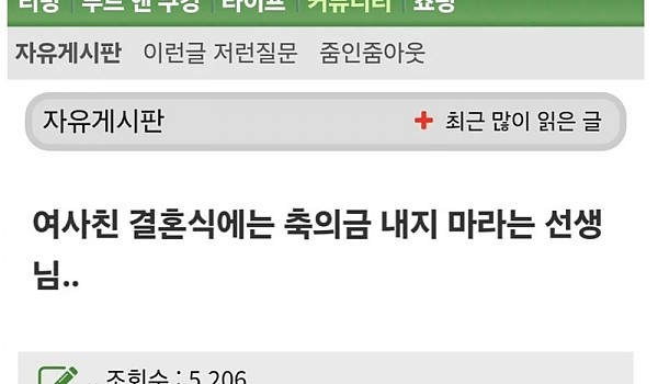 여사친 결혼식에는 축의금 내지 마라는 교사