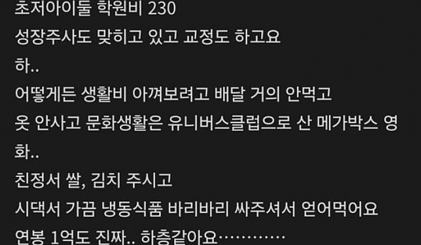 맘카페 남편 연봉 1억 팍팍설