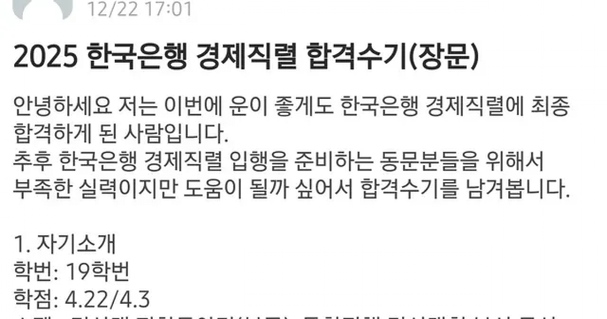 지방대생이 한국은행 경제직렬로 들어가는 법