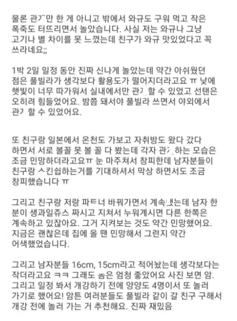 모르는 남녀 넷이 풀빌라 가서 人人한 후기