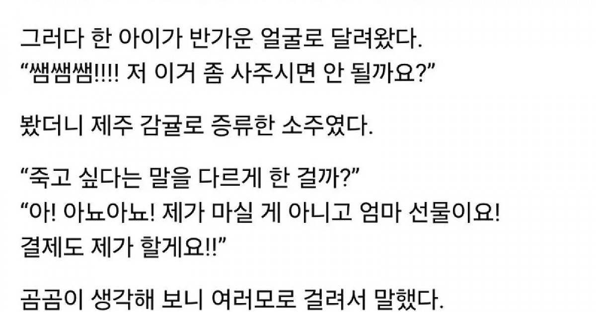 수학여행가서 선생님에게 감귤소주 사달라는 학생