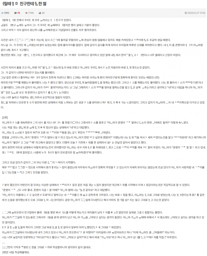 ㅇ릴때 ㅇ마 친구인 ㄱㅅ 큰 아ㅈ마한테 ㄷ한 썰