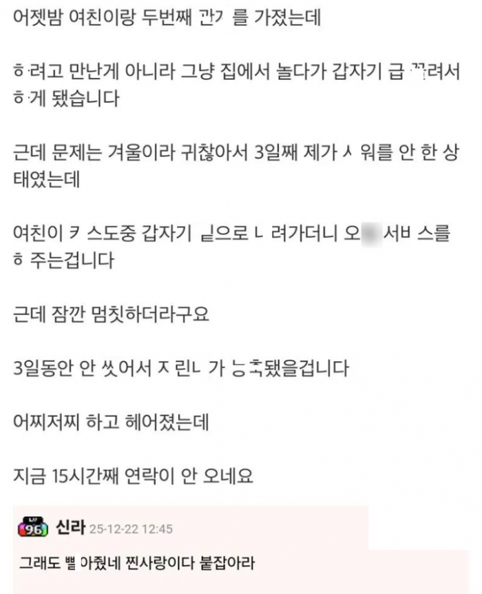 어젯밤 ㅅ워 안하고 여친이랑 두번째 ㅅㅅ를 했는데 생긴 일