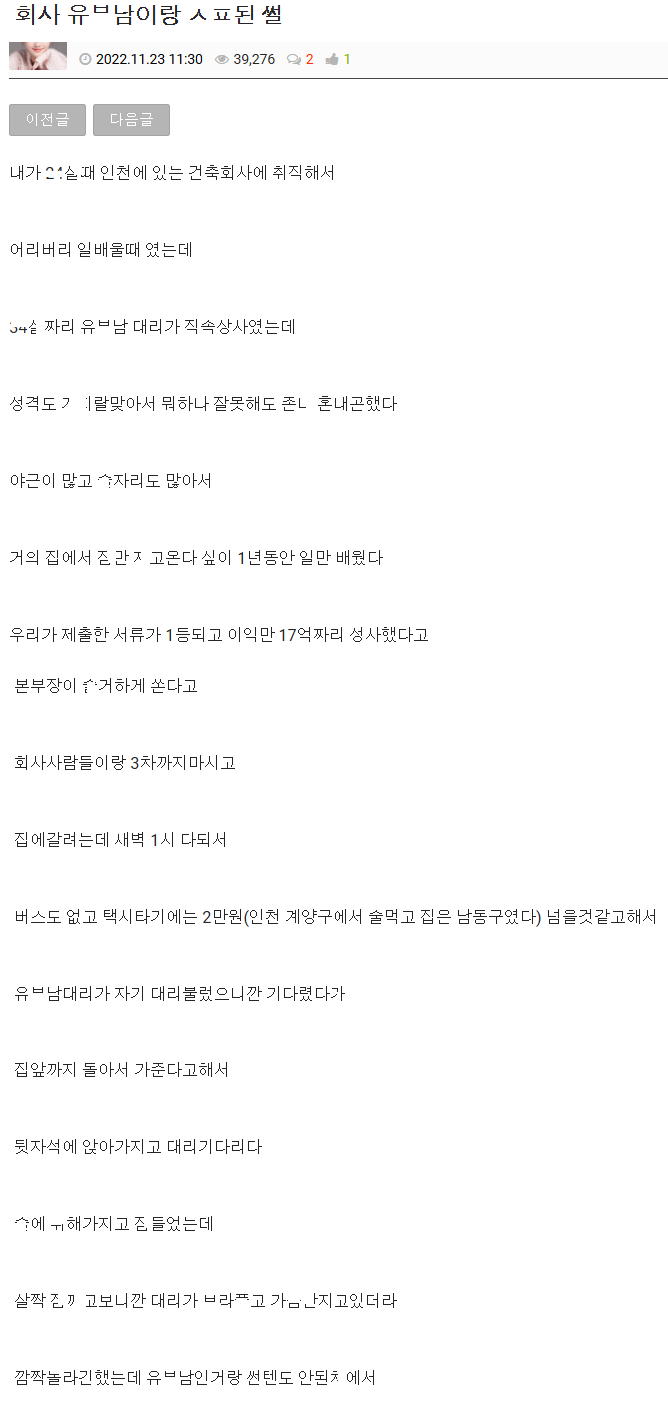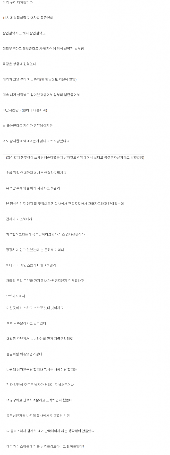 평소 안좋아하던 회사 유ㅂ남 대리랑 ㅅㅅ파ㅌㄴ가 된 과정