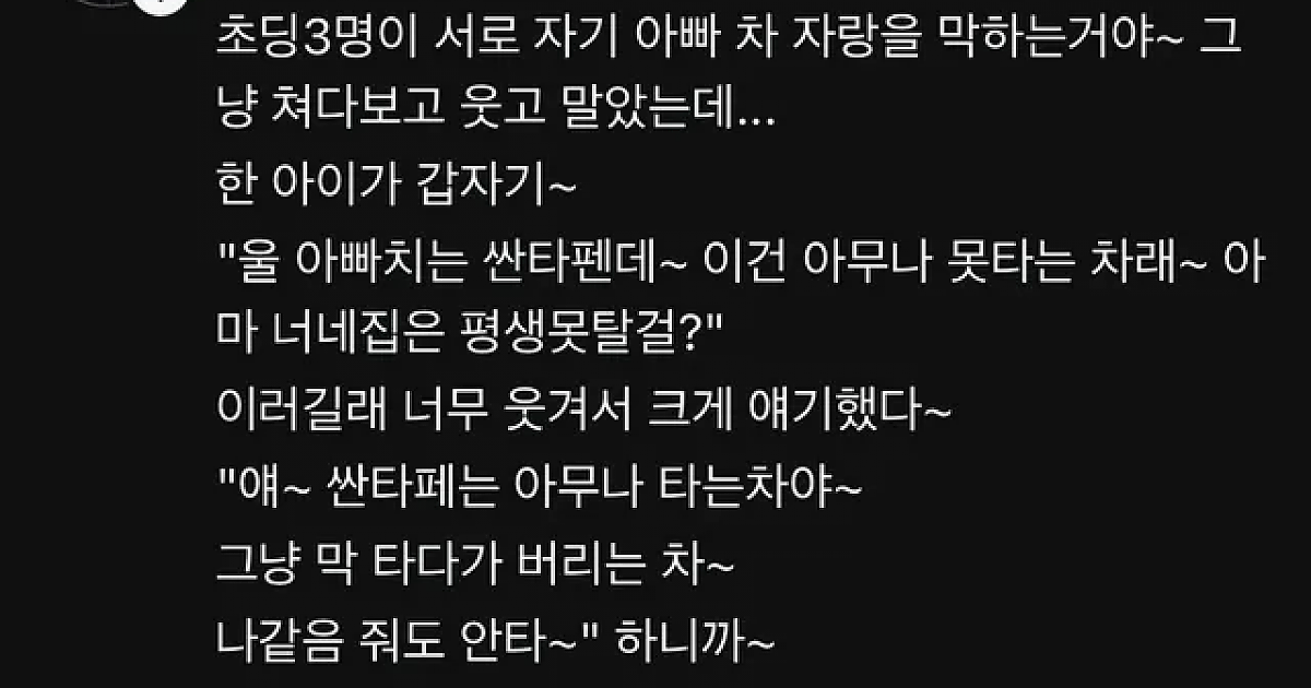 초등학생한테 싼타페는 막 타는 차라는 아저씨