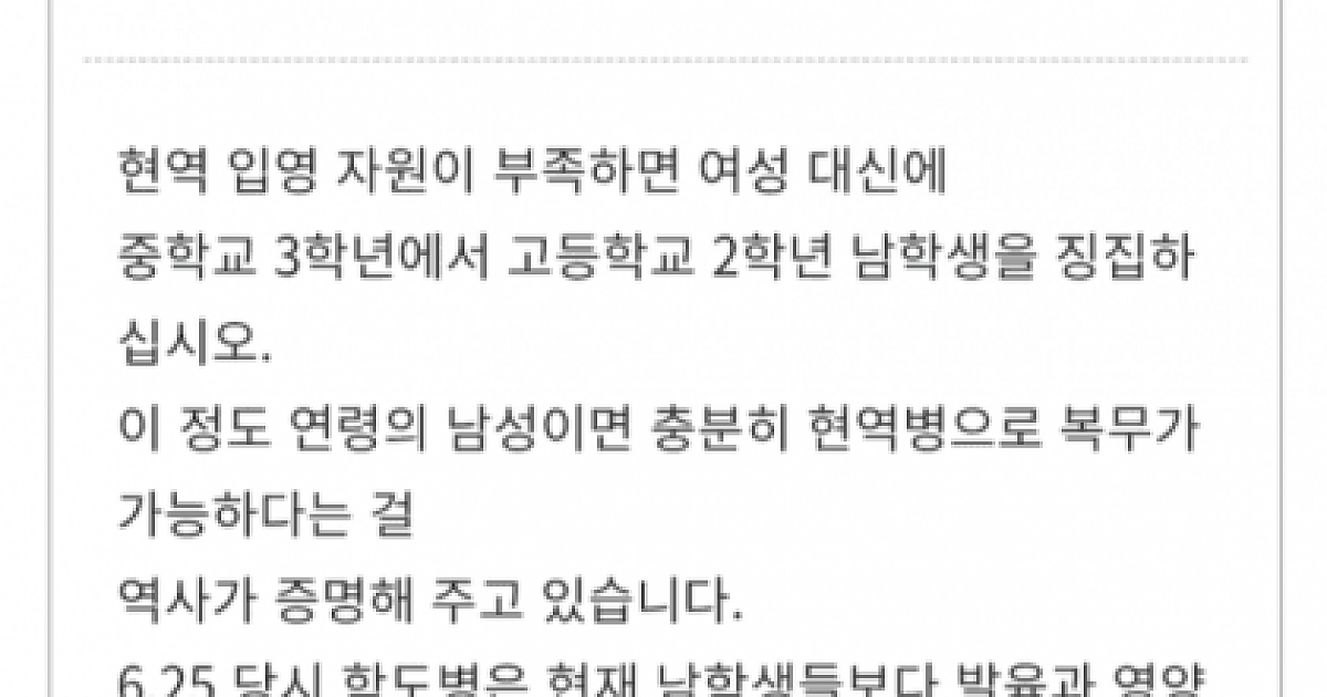 안 여성징병 대신 소년병 징집을 검토해달라