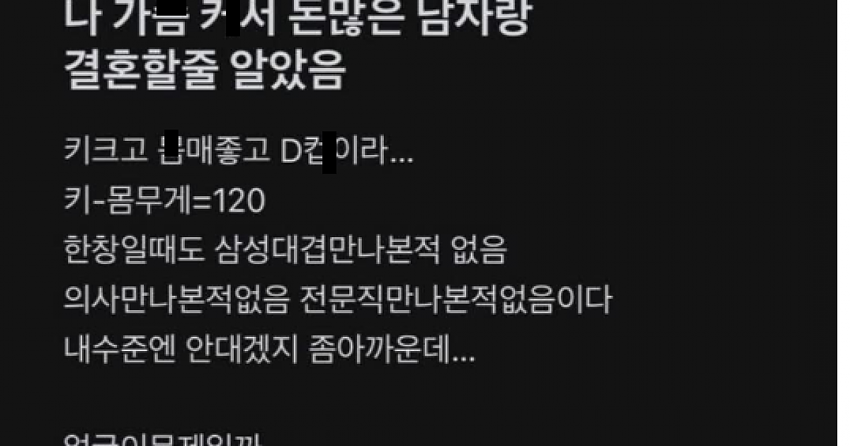 ㄱㅅ 커서 돈 많은 남자랑 결혼할 줄 알았다는 D클라스녀