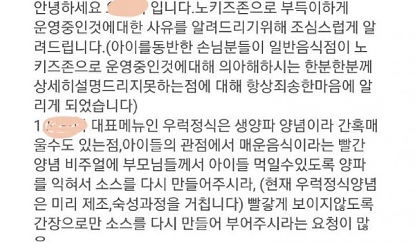 재주 유명식당 노키즈존된 이유