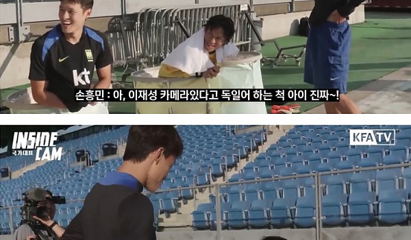 이재성과 옌스 카스트로프의 대화를 지켜보는 손흥민.mp4