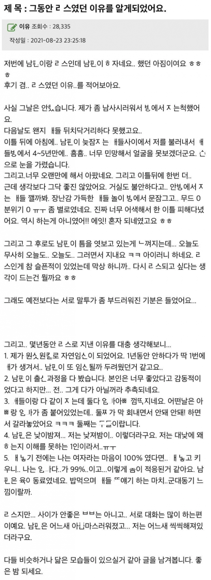 그동안 남ㅍ과 ㅅㅅㄹi스였던 이유를 알게 됨